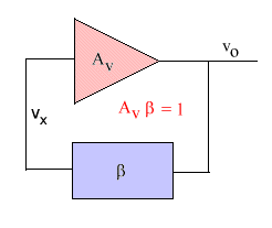 2) For å skille ut en bestemt frekvens fo, må tilbakekoblingsnettverket b lages som et resonansfilter. Dette gjør at b Av = 1 for en bestemt frekvens fo. For sideliggende frekvenser, vil b Av < 1, noe som fører til at disse frekvensene ikke vil eksistere.