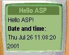 Save this code as "first.asp" file in "C:\inetpub\wwwroot" and after that, run it in your simulator using the HTTP request: "http://localhost/first.asp" You should see something like in Figure1 bellow: