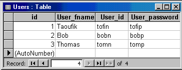 ADO objects should be first created and stored in variables, then we can use them, that what happened in our file: we created the Connection and the RecordSet objects using the ASP Server object's CreateObject( ) method, after that we used them. We opened the connection to our Microsoft Access storedb.mdb file using the string in the Connection's Open( ) method in this way: conn.Open ("DRIVER={Microsoft Access Driver (*.mdb)};DBQ=filename.mdb;"); And we opened the RecorSet using its Open( ) method also, which took two parameters: the query UserQry and the connection conn. The UserQry holds a -SELECT...WHERE- SQL (Structered Query Language) statement, which compares the user id and the password given by the user with the records in our Users table. By an if ... else statement, we separate between the tow cases: 1. Our RecordSet is already at the End Of File (EOF), that means that there is no record found corresponding to the user's inputs, then we suply the card titled Error! (Figure2) and we close the Connection object with its Close( ) method, this will close also the RecordSet object. 2. The inputs are corresponding to a record in the Users table, then the RecordSet object is not empty and the second card titled Welcome will show up (Figure3). This card has quite much content, the first thing dispalyed from the table is the user's first name which we got by a reference to the RecordSet object: (<%=rs("User_fname")> this is just a short-cut for <% Response.Write(rs("User_fname"))>), after this we open a new RecordSet prodRs which will hold all the records from our Products table: